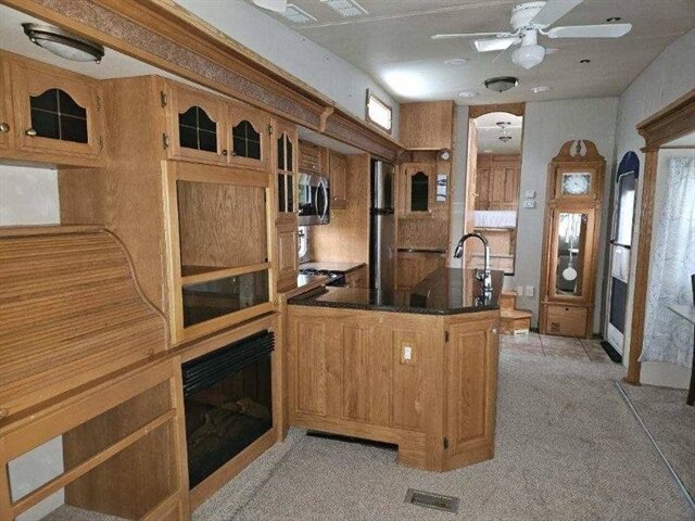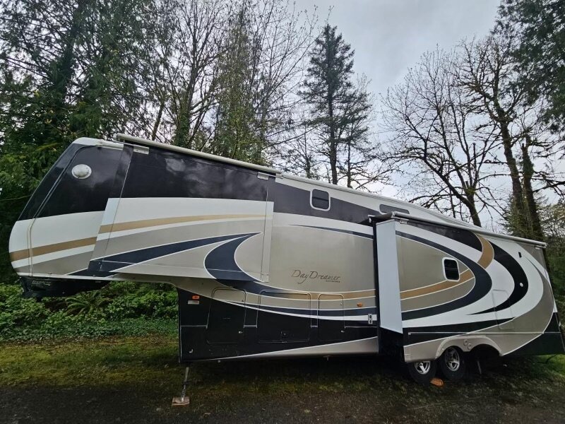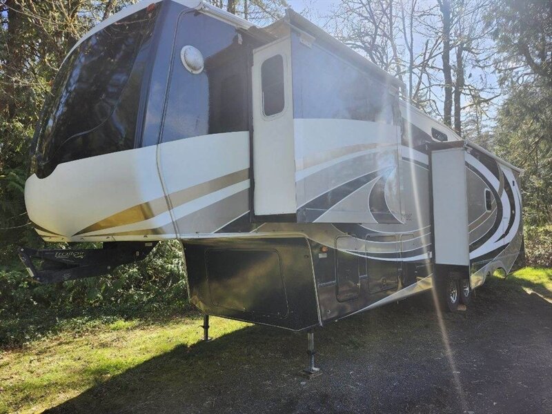 For sale is a beautiful 39ft 5th wheel. 3 slides with toppers. Full body paint, pass through storage area. Large awning with window awnings. Interior features brand new carpet with rear living room that has brand new chairs, sofa sleeper and dinette. Fireplace, ceiling fan. Desk area. Large kitchen with huge counter space area. Double sink. 3 burner stove with microwave convection oven. Beautiful stainless refrigerator and freezer. Master bedroom with walk around queen bed. Huge closets with dresser drawers. The shower is separate from the bathroom. Full washer and dryer hookup in it's own closet. Dry weight is 12,800lbs no leaks, everything works as it should. Financing options and delivery available. Coach is Located in Brightwood OR.