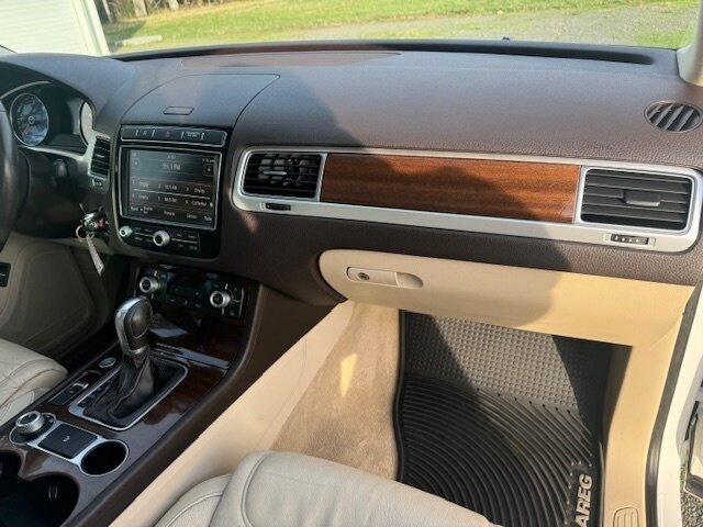 Introducing the 2015 Volkswagen Touareg TDI Sport AWD, a remarkable blend of luxury, performance, and efficiency. This SUV stands out with its striking White exterior that not only exudes elegance but also provides a clean and modern aesthetic. The Tan leather interior complements the exterior beautifully, creating a warm and inviting cabin atmosphere. With a robust 3.0L Diesel Turbo V6 engine, delivering an impressive 240 horsepower and 406 ft-lbs of torque, the Touareg offers both power and fuel efficiency, making it a versatile choice for various driving conditions.
