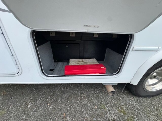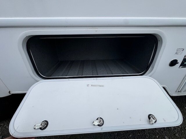 Additional features include air conditioning for warm days, a heating system for cooler nights, and plenty of storage compartments both inside and out, making it easy to keep your belongings organized.