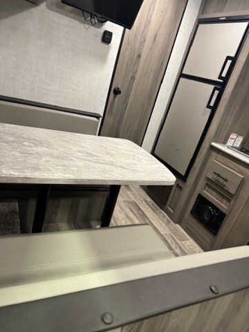 Stepping inside, you will find a thoughtfully designed interior that maximizes space and functionality. The Gray interior color scheme creates a modern and elegant ambiance, while the efficient layout makes the most of every inch of space. The vinyl flooring is not only easy to clean but also durable enough to withstand the rigors of travel, ensuring that your interior remains looking pristine for years to come.