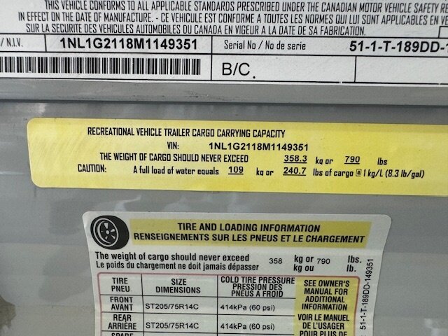 20 ft length, 1 awning, 1 roof a/c dry weight 2,996 gross weight 3850 water capicity Grey: 36gal, fresh 30 gal black 36 gal