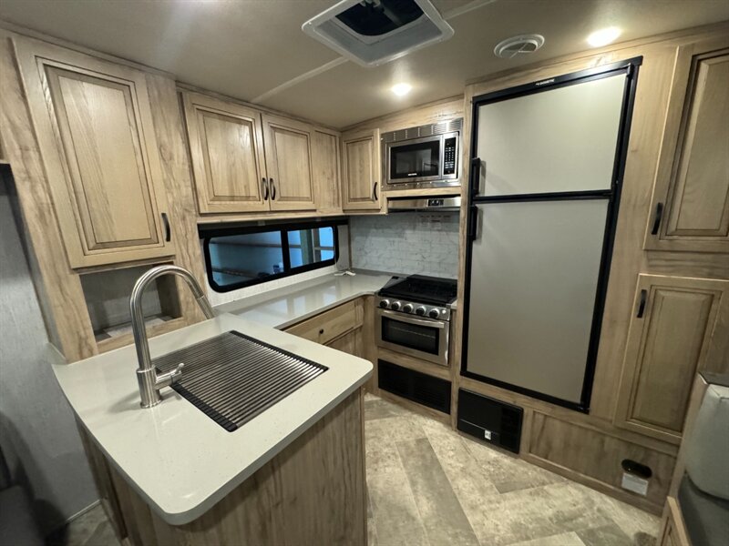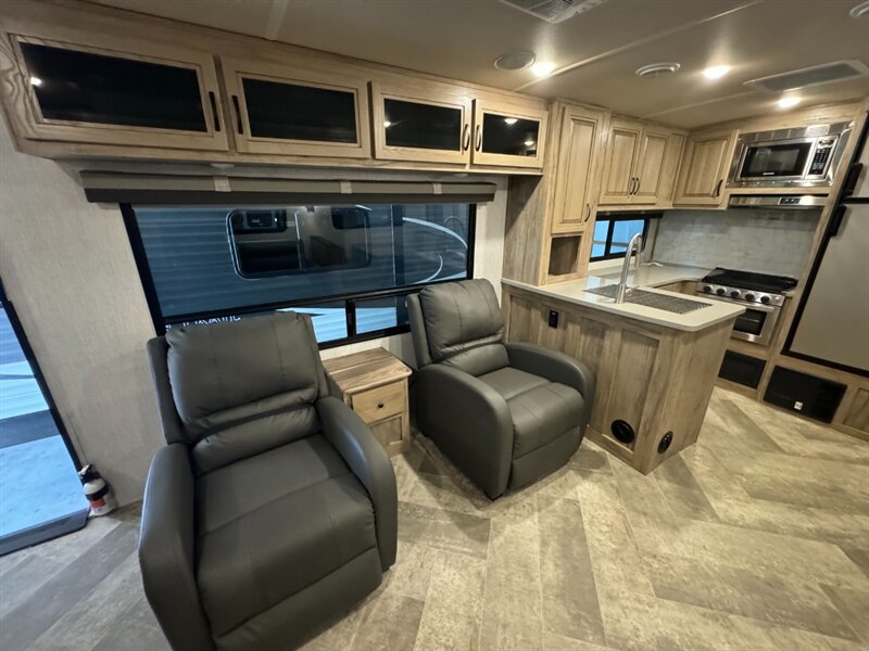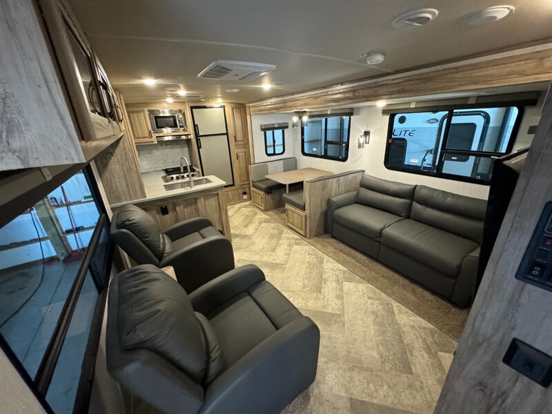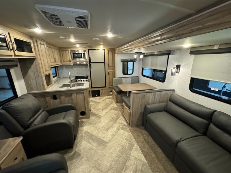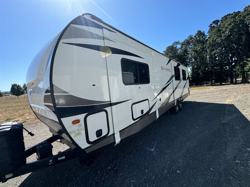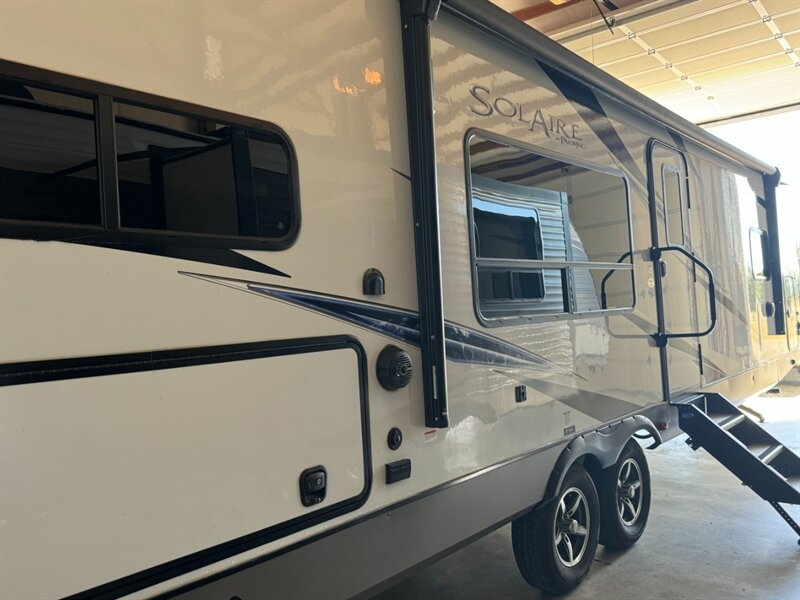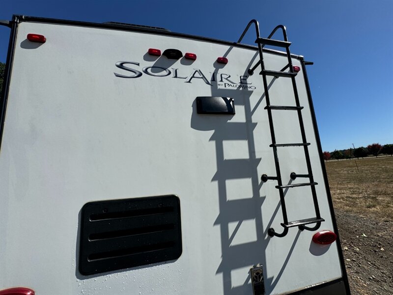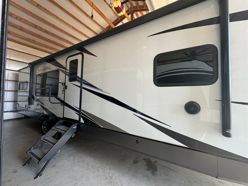 This beautifully maintained 2021 Palomino Solaire Travel Trailer, stretching 35 feet in length, is a beautiful trailer with double slide-outs for maximum interior space and comfort. This sleek, modern RV is designed for travelers who want both style and function on the road. Featuring a spacious floor plan, it offers ample living space, a full kitchen, and a cozy sleeping area. The rear king bed, combined with the sofa, and dinette allow this coach to sleep 6 people. Whether you're planning weekend getaways or full-time travel, the Solaire delivers the comfort of home wherever you park it. Ready to tow and adventure-ready. Livable Coach. Viewing by appointment only.